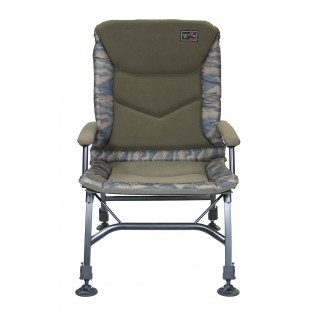 Luxusní křeslo Hurricane Camo Chair představuje zbrusu nový produkt patřící do exkluzivní camo edice produktů značky ZFISH. Tento model křesla nabízí maximální komfort při posezení v přírodě. Křeslo je vyrobeno z velmi kvalitní a odolné konstrukce. Silné teleskopické nohy s pevnou aretací umožňují zvednutí křesílka vysoko nad zem, což je vhodné pro pohodlné sezení a vstávání. Komfort vysokého opěradla ještě zvyšuje velmi pohodlný a velký fleece polštář. Křeslo je možné polohovat pomocí kloubu. Polstrované a odjímatelné krytky područek zajišťují příjemný a hřejivý pocit. Jsme přesvědčeni, že s tímto křeslem jsme dosáhli maximální kvality ve své cenové třídě.